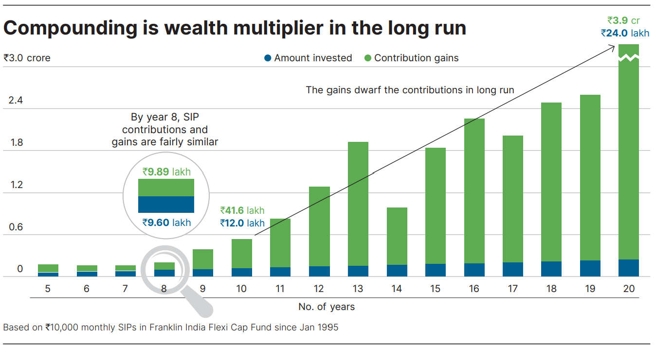 Despite economic crises, geopolitical events, and market downturns, long-term market trends have been upward. Sensex has grown over 800 times in 45 years. So, invest today for long term wealth creation